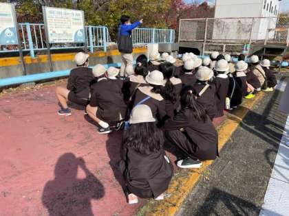 水がきれいになる工程を見学したり、水をろ過する実験をしたりしました。