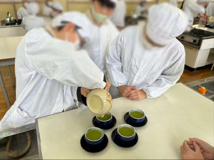 5年生では、初めての調理実習を体験しました。今回の調理実習は、きゅうすでお茶を淹れました。緊張しながら調理実習していましたが、先生の話をよく聞き、協力しながらできました。最後に淹れたお茶を美味しく頂きました。次回も楽しみです。
