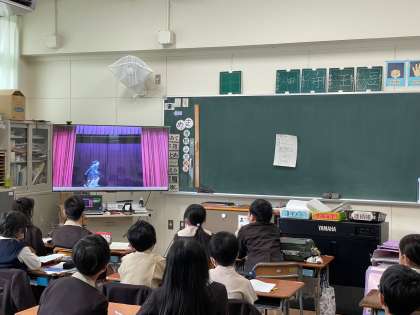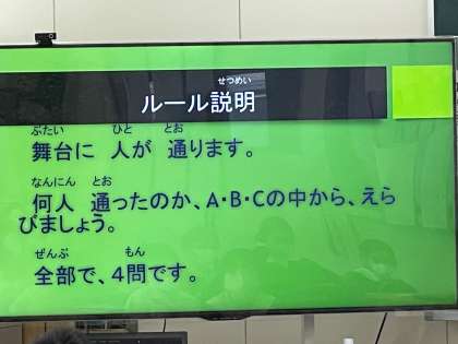 3学期1回目の集会は、「何人通ったでしょう」ゲームでした。ステージ上を通る集会委員会の児童の数を一生懸命に数えていました。