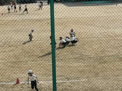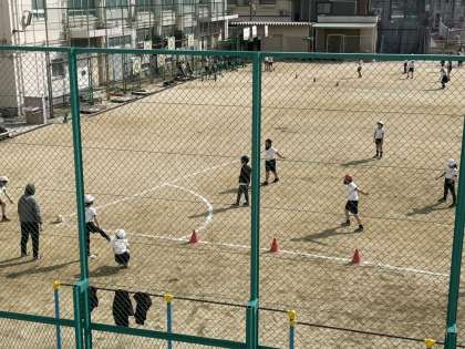 体育科の学習で、ベース型のボール運動に取り組んでいます。どうすれば点数を取ることができるか蹴る位置を考えながら行っています。これからも練習を進めていきます!