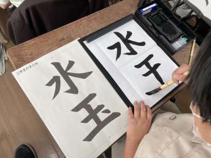 今年度最後の毛筆に取り組みました。姿勢、筆の持ち方、書き方など、しっかりと一年間で身につけることができました。自分の名前も丁寧に書けるようになりました。