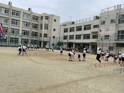 体力テストにむけて、様々な運動を取り入れています。同じ道具でも、毎回動きを変えながら、自分の目標を決めて行っています!