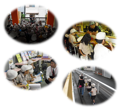 子どもたちはグループに分かれ、校区内のお店や施設をめぐり、いろいろな質問をさせていただきました。