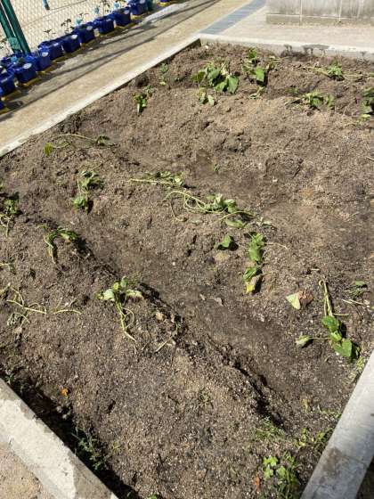 学習園には、いろいろな植物が植えられています。先週、2年生の畑にはさつまいもが植えられていました。さつまいもの葉はあっという間にに成長していきます。見のがさないように、しっかり観察しましょう!