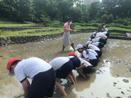 スカイビルの下で田植えを行いました。