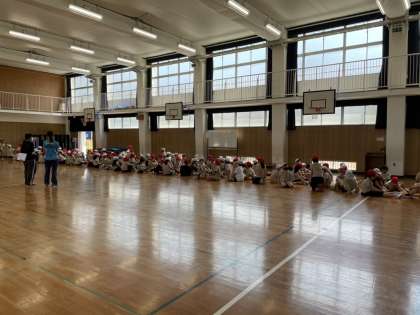 講堂で徒競走の順番を確認しました。自分の順番をすぐに覚えることができていました。明日は運動場で練習する予定です。