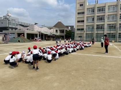 運動場のコースで徒競走の練習を行いました。とても暑かったのですが、一人ひとりゴールをめざして一生懸命走りました。本番にむけて、練習を続けていきたいと思います。
