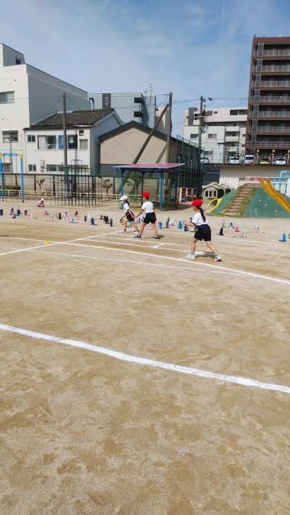 今日は、かけっこの並び方の練習をしました。トラックを走るのは緊張するなあといった子どもたちの表情。本番では、たくましい表情で走ってくれることと思います。