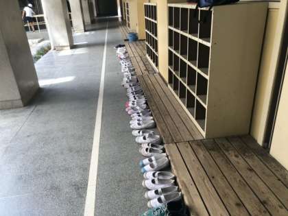 また、測定を行う教室前の様子です。何も言わなくても、上靴がしっかりと並べられていました。また測定後には、たくさんの子どもたちが「ありがとうございました。」と言っていました。こうした小さなことを大切にできる一人ひとりであってほしいと思います。