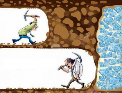 上の人は宝物を獲得するために、必死でがんばっています。