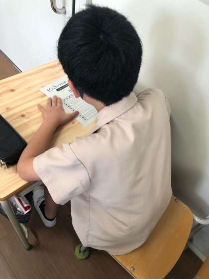 5年生は週に1回以上、計算力を向上させるため、100マス計算を行なっています。一生懸命取り組む中で、記録を1分以上縮めた子もいます。「継続は力なり」ですね。