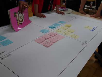 授業を振り返りながら、教職員間で活発な議論を行いました。