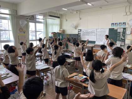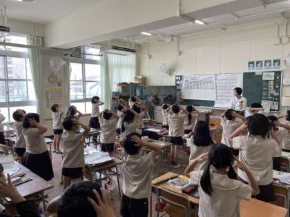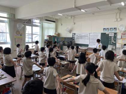 音楽の学習の様子です。体を使いながら、発声の練習をしています。すてきな歌声が響いていました。