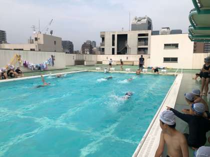 水慣れの運動をした後、泳力測定を行いました。これから自分に合ったコースで練習し、泳力を向上させていきたいと思います。