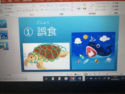 国語科の学習では、パワーポイントを活用して、環境問題についての発表会を行いました。
