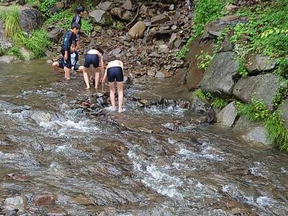 でも、川遊びと魚つかみが始まると雨が止むというこの強運!