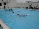 今回の着衣泳の目的は、水の事故を未然に防ぐため、水着と違う泳ぎにくさを体験させ、不慮の事故に遭遇したときに落ち着いて対処できるようにするためのものです。