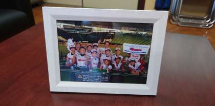 ティーボール全国大会に出場した子どもたちが、ベルーナドームで一緒に撮影した写真を持ってきてくれました。