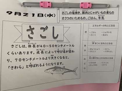 9月21日(水)給食
