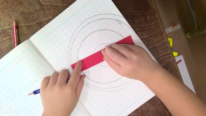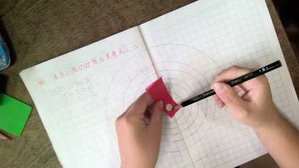 算数で円の学習をしています。コンパスを使うのではなく、別の方法で円を描きました。最初は苦戦していましたが・・・楽しく活動できたようでした!