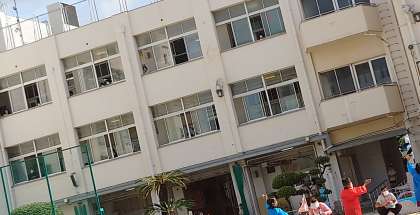 窓からたくさんの小学生が拍手してくれています。