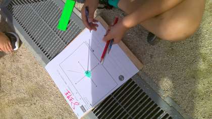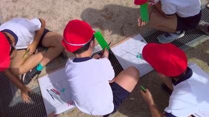 理科の学習で、かげと太陽の位置について調べました。時間を変えて記録をすると、かげも太陽の位置も変わることに気づくことができました。グループで協力して記録をしている姿がとても素敵でした。