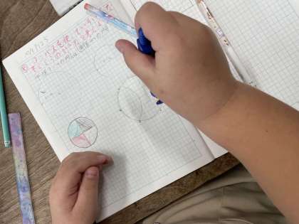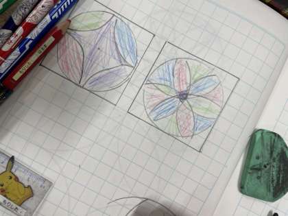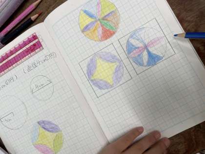 コンパスを使って、いろいろな模様を描いてみました!上手にかくことができて、とても喜んでいました。ほかの模様もぜひトライしてみましょう!