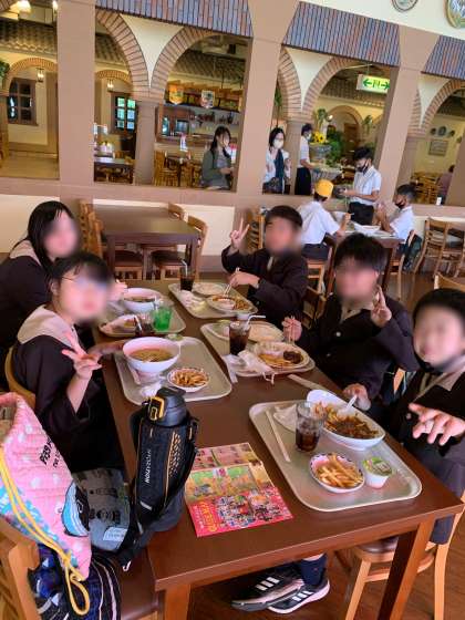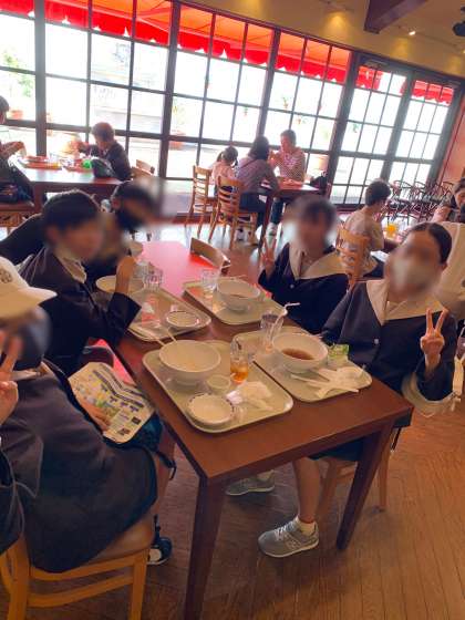 班に分かれて自由行動が始まりました!昼食を先に取る班とアトラクションに走っていく班の姿もありました。