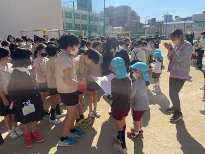 幼稚園のきりんぐみのみなさんに、感謝の気持ちを込めて、メッセージカードをプレゼントしました。
