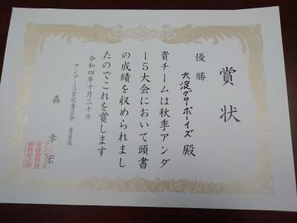 秋季アンダー5大会において、大淀グローボーイズが見事優勝し、今朝の児童朝会で表彰を行いました。
