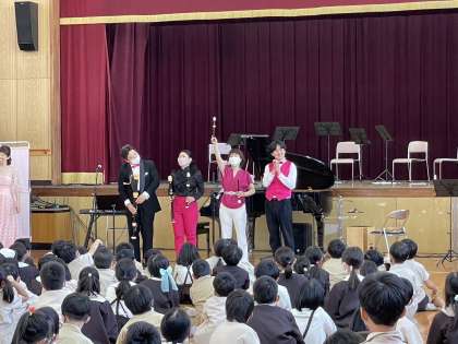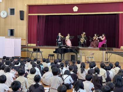 1〜4年生を対象に、芸術鑑賞会が行われました。いろいろな楽器を目にし、素敵な音楽を耳にすることができました。演奏のリズムに合わせて、楽しそうに体をゆらしいる児童もたくさん見られました!