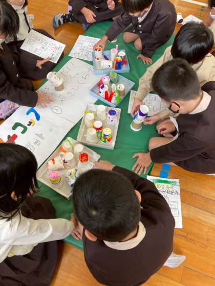 また、1年生を招待して一緒に遊びました。楽しく活動する姿や班で助け合う姿が見られ、1年生も2年生もすてきな時間を過ごすことができました。