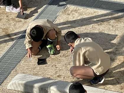 理科の実験の様子です。虫めがねで日光を集めたらどうなるかの実験を行いました。黒い紙に光を当て続けると・・・けむりが出てきました!みんなびっくりしていました。