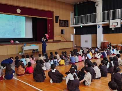 大淀警察署の方にお越しいただき、交通安全について楽しく学習することができました。