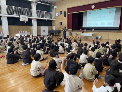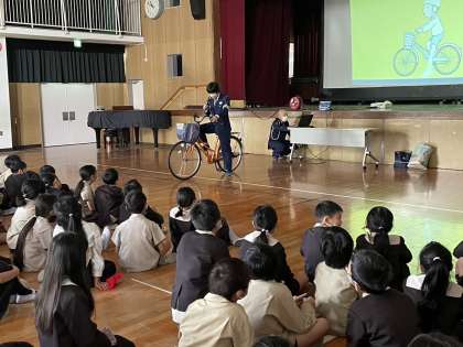 警察署の方に来ていただき、自転車の安全な乗り方について教えていただきました。どのようなことに気を付ければよいか、実際の自転車を使ってわかりやすく説明してもらいました。自分の乗り方を見直し、安全に乗ってほしいと思います。