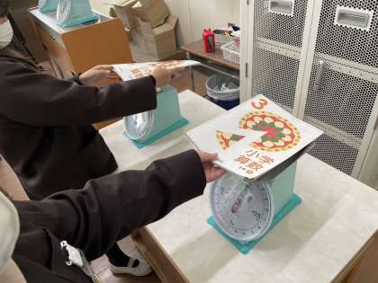 算数科の学習で、いろいろなものの重さについて学習しています。実際にどれくらいかを予想して、重さをはかりではかってみました。