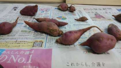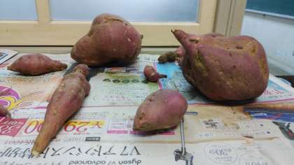 学習園で育てていたさつまいもの収穫をしました。いろいろな形がありました。こんな大きなさつまいもも採ることができました!秋を感じます🍠