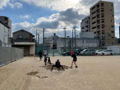 ?運動委員会のメンバーが、昼休みに雨でぬかるんだ運動場の整地をしてくれていました。整地のおかげで、5時間目に体育ができた学級がありました。