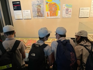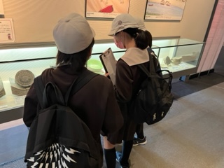 本日は、大阪歴史博物館と難波宮跡、大阪城、ピース大阪に社会見学に来ています。今、大阪歴史博物館で一生懸命にメモをとりながら見学してます。