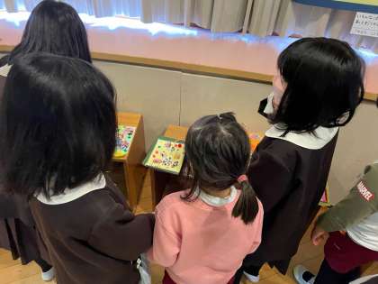幼稚園の作品展鑑賞に行きました。幼稚園の子どもたちに案内してもらいながら、楽しく鑑賞することができました。