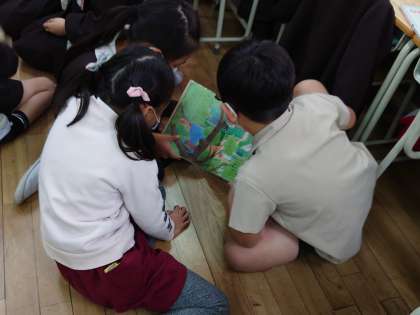 2年生の子どもたちが、やさしく読み聞かせをしてくれています。