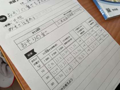 今日は、おもりの重さを変えると一往復する時間はどのようになるのかを調べました。