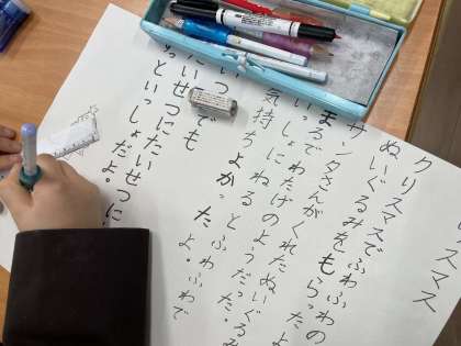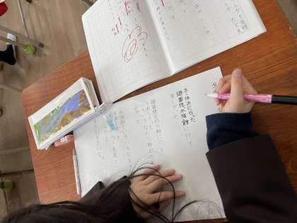 国語の学習の様子です。詩を自分で書いています。冬休みなどの出来事で心に残ったことを自分なりの言葉で詩に表しました。
