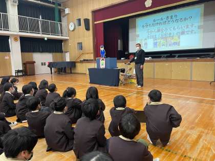 「万引きをするとどうなってしまうのか」について、人形劇を通して学びました。
