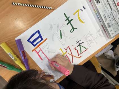 委員会活動も残り2回となりました。放送委員会の様子です。放送委員会では、放送を聞いてもらえるような呼びかけをするポスターを作成しています。