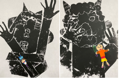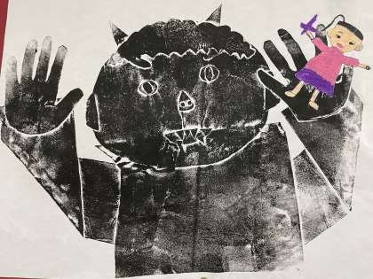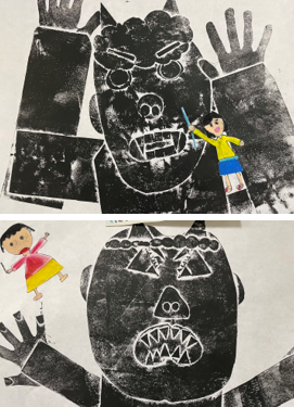 図工で紙版画をしました。節分に合わせて、いろいろな鬼を作りました。それぞれ工夫の感じられる作品に仕上がりました。