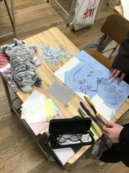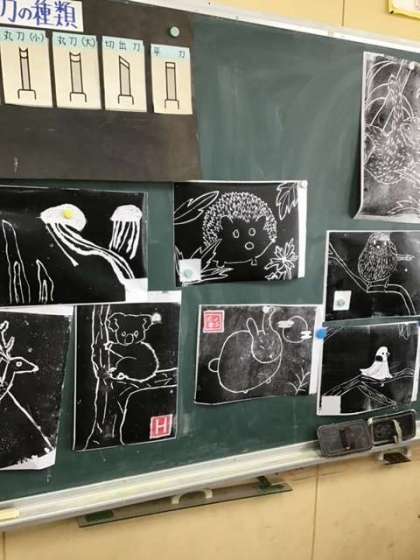 彫刻刀を使って、木版画に取り組んでいます。安全に気をつけ、集中して彫り進み、素敵な作品ができてきてます。