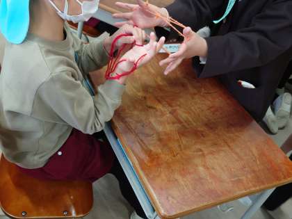 あやとりやけん玉、紙相撲やお手玉などで交流。