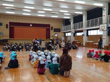 幼稚園や保育所の子どもたちを招いて幼小交流会を実施しました。