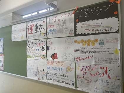 いろいろなクラブの活動を映像で見ました。どのクラブもとても楽しそうです。保健室前には、クラブのポスターも掲示してあります。ぜひ、見てみましょう!